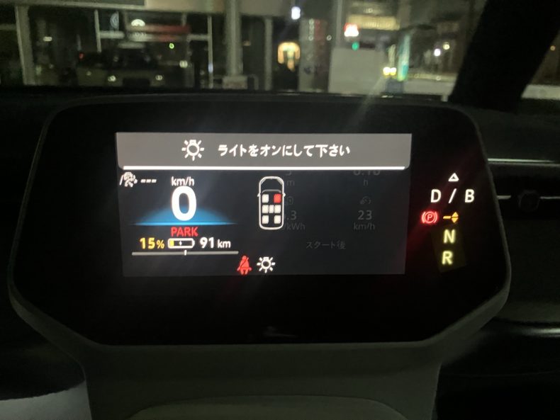 自宅に到着時点のバッテリー残量は17%走行可能距離97キロほどでした