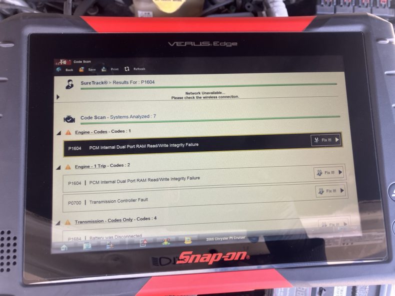 P1604 PCM ハーネス、コネクターの接続不良、断線と出ます